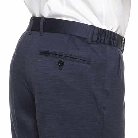 ・ウエストのサイドをシャーリング仕様にすることで、コンフォートに仕上げたセットアップパンツ