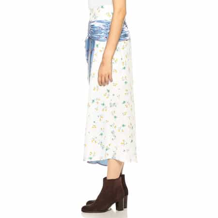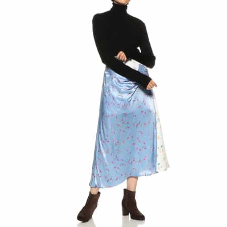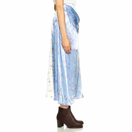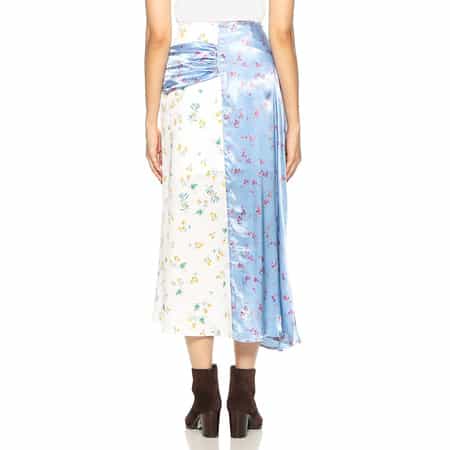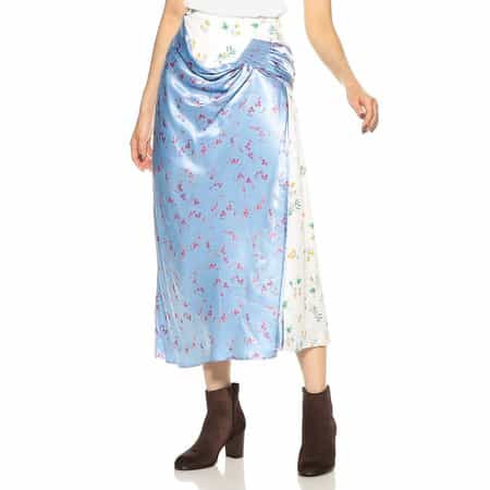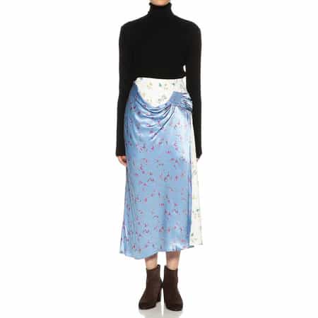 ・緩やかなAラインのフラワープリントスカート・2種類の花柄を組み合わせ、ドレープの効いた巻きスカートのようなデザインが個性をアピール・2022年春夏シーズン・ブラジル サンパウロ出身のレナータ・ブレナによるイギリス ロンドンをベースに活動しているブランド<RENATA BRENHA(レナータ ブレナ)>。手の込んだディテールや構築的なシルエットにこだわったデザインに定評があります。生地の再利用やアップサイクルなものづくりにも積極的に取り組んでいます。モデル:H164 B75 W58 H85 着用サイズ S