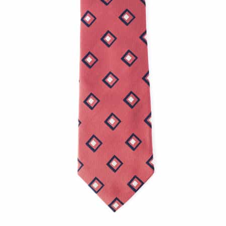 ・ダブルダイヤモチーフの小紋柄タイ・個性的な柄でVゾーンにめりはりをプラス・艶やかなシルク素材・2023年春夏シーズン・上質で気品を備え、程よくトレンド感が漂うアイテムで人気を誇る<BARNEYS NEW YORK(バーニーズ ニューヨーク)>オリジナルコレクション。