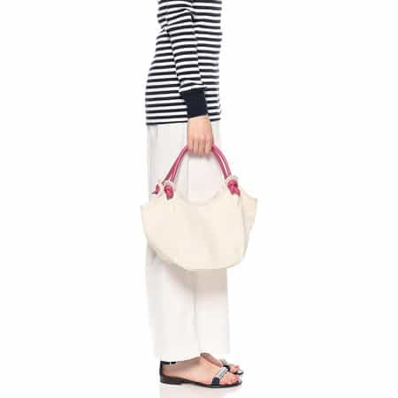 ・軽やかなキャンバス素材に、持ち手の明るいカラーがポイントになった実用性の高いミニトートバッグ・ハンドルの結び目がとてもキュートなデザイン・内側は両サイドにポケットが付いており、小さなものを見つけやすい仕様・マグネットクロージャー・2023年春夏シーズン・素材や縫製にこだわり、ベーシックなデザインに程よくトレンド感を加えたアイテムで人気の<BARNEYS NEW YORK(バーニーズ ニューヨーク)>オリジナルコレクション。・重さ:約214g