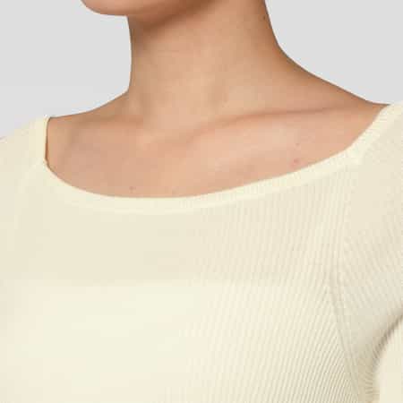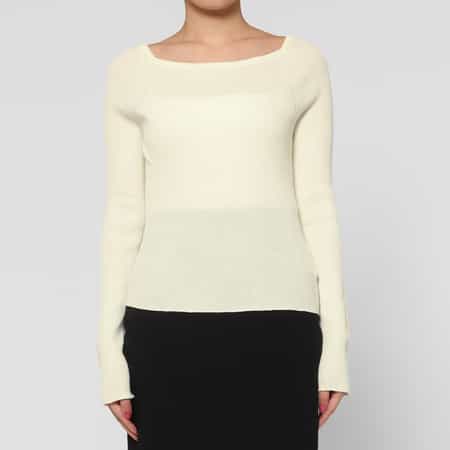 ウォッシャブル コットン素材 スクエアネック ホールガーメントリブニットプルオーバー