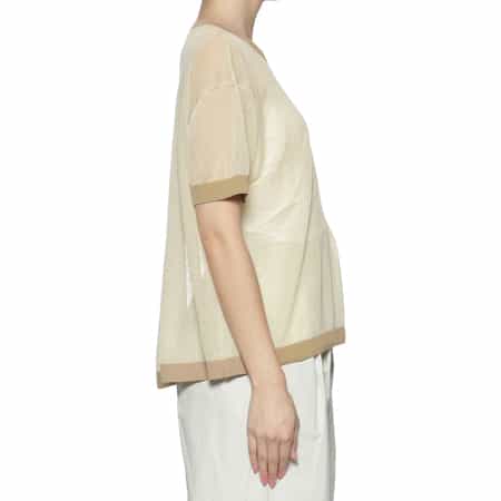 シアー素材ポケット付ニットプルオーバー
