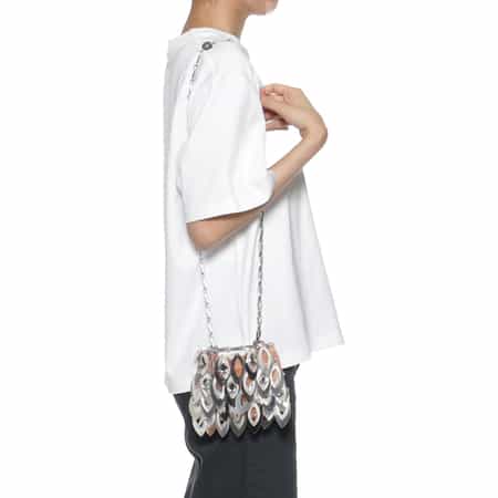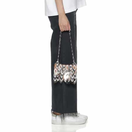■デザイン・葉のデザインをしたスパンコールとクリスタルをあしらったショルダーバッグ・ロゴが刻印されたメダリオンが付いたシルバーメタルのダブルチェーンハンドル■サイズ感・仕様・ウォレットとスマートフォンを収納可・内側ロゴプレート付き・ストラップ取り外し不可■重さ約230g■ブランドオートクチュール界を牽引してきたパリの老舗メゾン<RABANNE(ラバンヌ)>。布地以外のメタルやプラスチックでドレスを作り、近未来を予感させるデザインで革新を起こしました。2013年以降、クリエイティブ・ディレクターにJulien Dossena(ジュリアン・ドッセーナ氏)が就任、今という時代を捉えた新解釈のデザインを打ち出しています。2023年にはブランド名をラバンヌへと変更し、初のメイクアップコレクションをスタートするなど新たなクリエーションに挑戦しています。