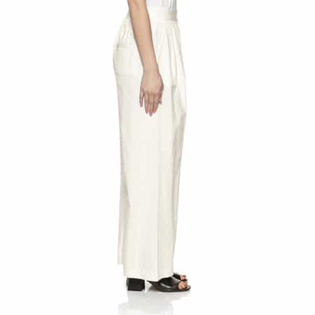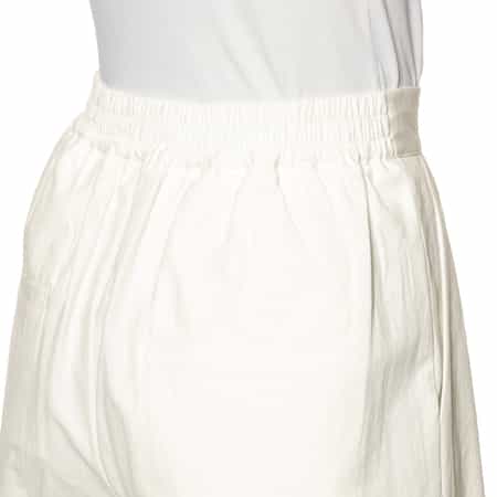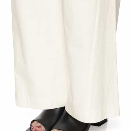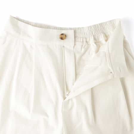・分量感のあるフロントタックがデザインポイントのワイドストレートパンツ