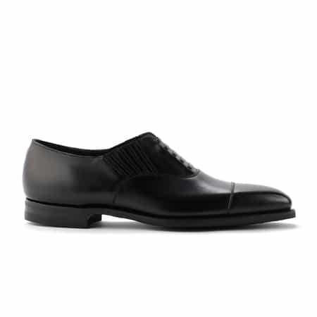 ・見た目は紐靴だが、サイドのエラスティックで脱ぎ履きが楽になる1足