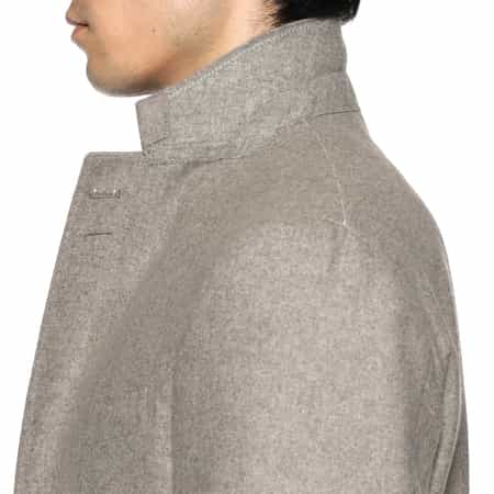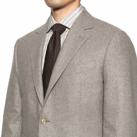 ・肩や胸周りは必要最小限の毛芯で、ごく軽やかに構築したスーツ