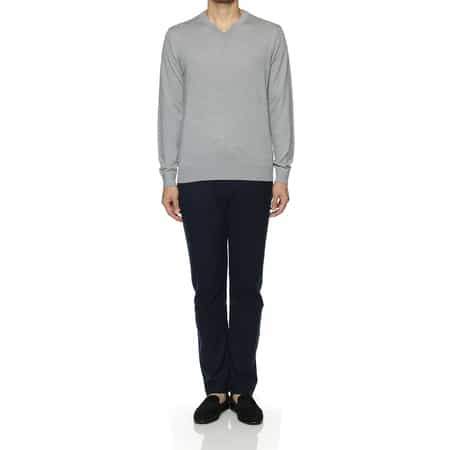 SUPER140Sウール Vネックニットプルオーバー