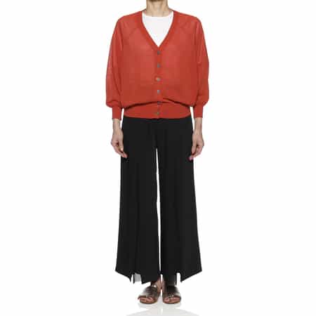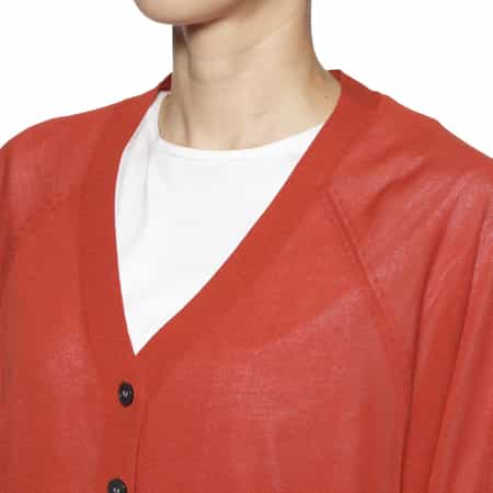 ・光沢感のあるハイゲージニットのカーディガン