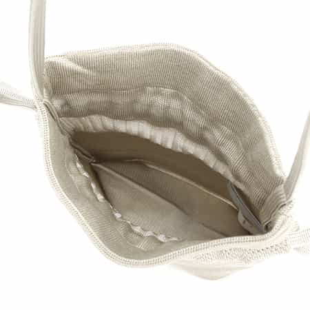・ピンタックとリブを組み合わせた編み地が特徴の巾着バッグ