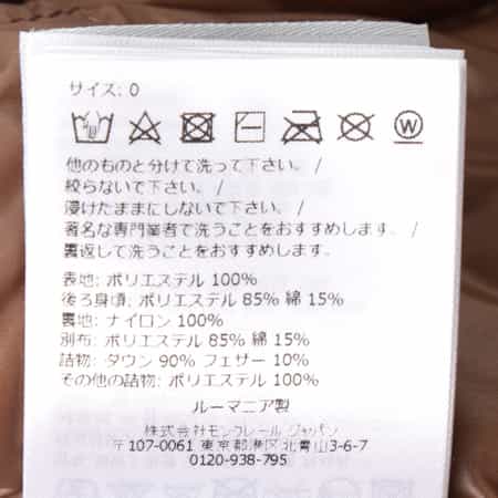 表地:ポリエステル100% 後身頃:ポリエステル85% 綿15% 裏地:ナイロン100% 別布:ポリエステル85% 綿15% 詰物:ダウン90% フェザー10% その他の詰物:ポリエステル100%