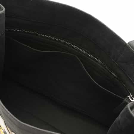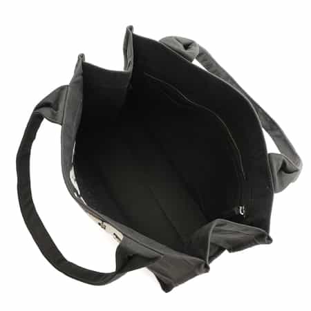 ・フロントにバナナプリント、ロゴ、メッセージがあしらわれたキャンバスミディアムトートバッグ