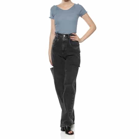 ・ダメージデザインを施したウォッシュドコットンデニムパンツ