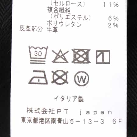 本体:綿81% 再生繊維(セルロース)11% 複合繊維(ポリエステル)6% ポリウレタン2% 皮革部分:牛革