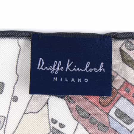 有名メゾンのアイテムも手がけるファクトリーで作られるスカーフには、美しさに定評のあるプリント、手縫いで繊細に仕上げられたパイピングなどにその一端を見ることができ、モダンなデザインとイタリアの伝統的な職人技術の融合を十分にご堪能いただける逸品です。