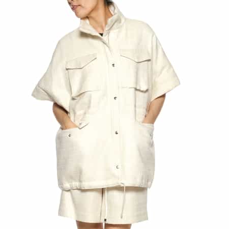 ・高めの襟や大きめのパッチポケットなど、メンズライクなデザインがポイント