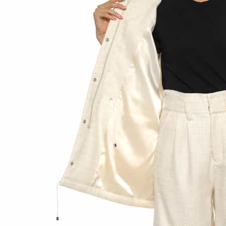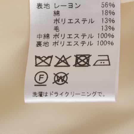 表地:レーヨン56% 綿18% 毛13% ポリエステル13% 中綿:ポリエステル100% 裏地:ポリエステル100%
