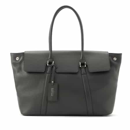 ・フラップ付きのレザートートバッグ