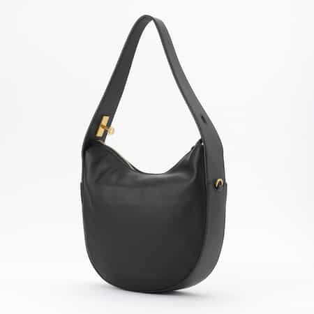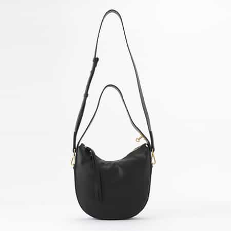 ・幅広めのワンショルダーとゴールドのパーツが際立つイタリア製のコンパクトなバッグ