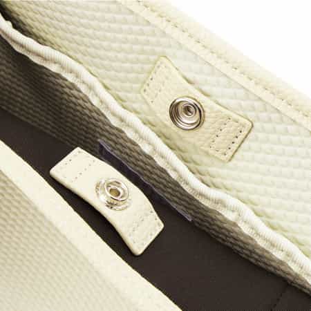 ■デザイン・ネオプレーン素材を使用したトートバッグ・縮性が高く軽いのが特徴・刺繍の「B」がデザインポイント■サイズ感・仕様・A4サイズ収納可能・マチあり・ボタンクロージャー・内ポケット■重さ約445g■ブランド<BARNEYS NEW YORK(バーニーズ ニューヨーク)>のオリジナルコレクションでは、メンズ、ウィメンズのウェアやアクセサリー、シューズを中心に、ベビーアイテム、テーブルウェアやステーショナリーまで幅広いアイテムを取り揃えています。ウェアは素材や縫製にこだわり、ベーシックなデザインに程よくトレンド感を加えているのが特徴です。スペシャリティストアならではのラインナップをどうぞお楽しみください。