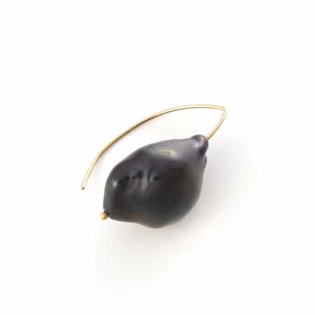 ・大きさのあるバロックパールのブラックのフックピアス