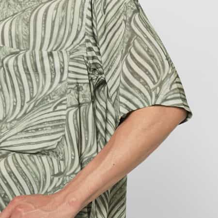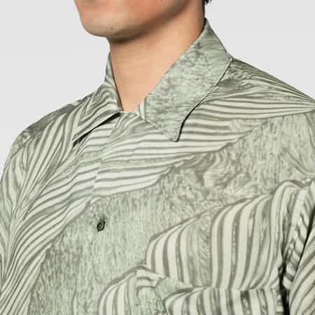 ・マックス・エルンスト氏が多用した自然モチーフを着想源に「グラッタージュ」の技法で描かれたリーフ柄をプリント