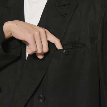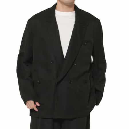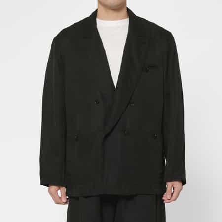 ・リネンシルクカルゼ生地を使用したオーバーサイズのダブルブレストジャケット