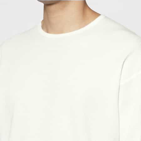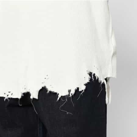 ・ゆったりと長めの着丈と裾のダメージが特徴