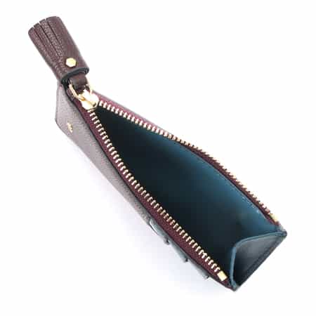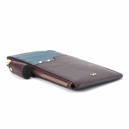 ・鮮やかなワインレッドと中のブルーの配色が特徴のカードケース