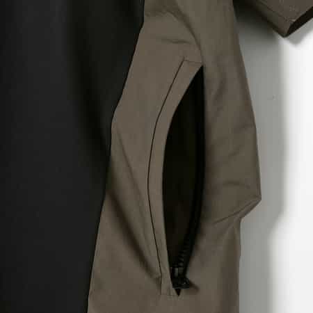 ・前身ごろ、後見ごろで異素材デザイン