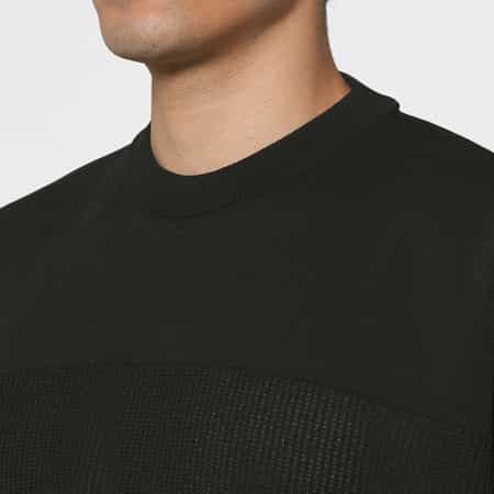 ・シンプルなクルーネックデザインながら、ワッフルのような編地の表情がさりげないアクセント