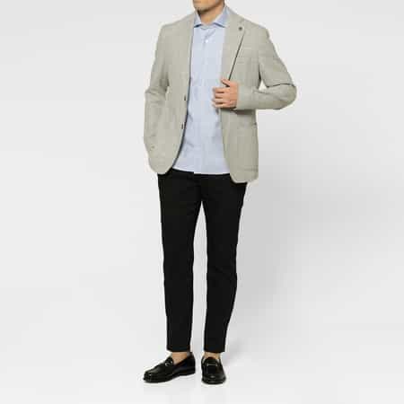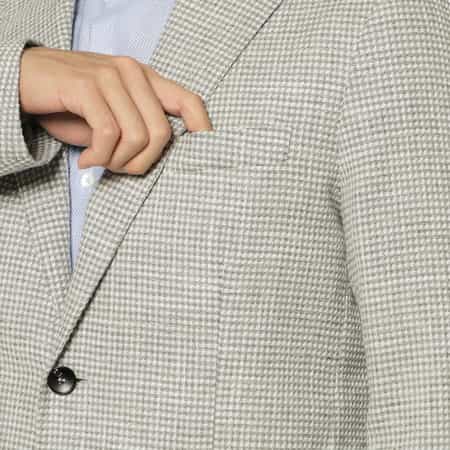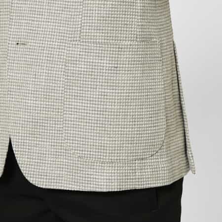 ・やや幅広めのラペルと高すぎないポケット位置
