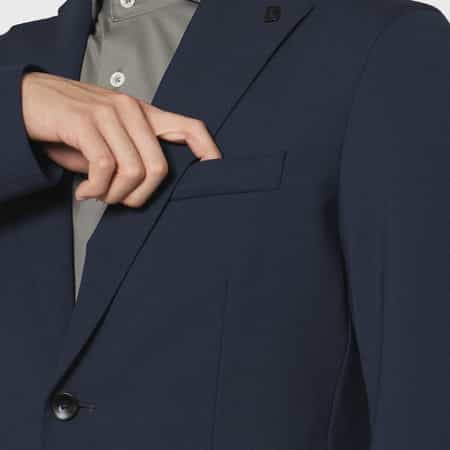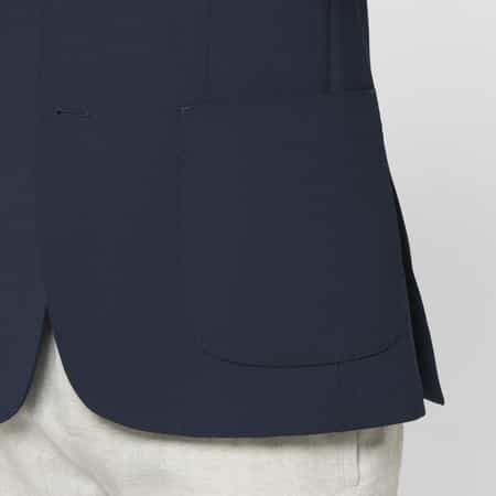 ・やや幅広めのラペルと高すぎないポケット位置