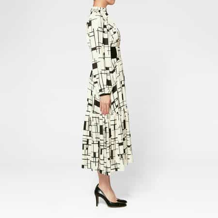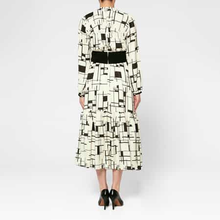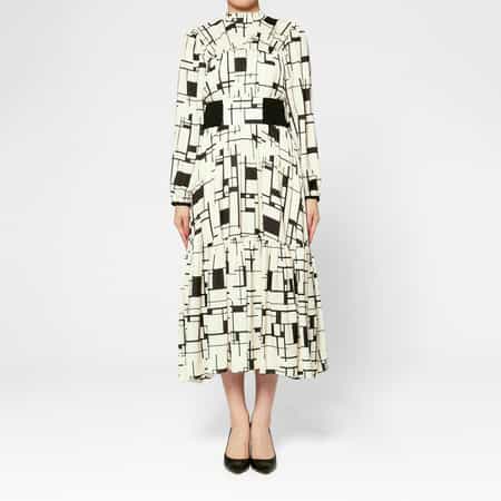 ■デザイン・大胆なジオメトリック柄が視線を惹きつけるロング丈のドレス・さりげないフィット&フレアシルエットを楽しめるウエストの切り替え・フリルをあしらったスタンドカラー・裾にかけてボリュームを出したエレガントなシルエットを楽しめる一着■着用シーズン春・夏■仕様洗濯:ご自宅で手洗い可能■ブランド<BARNEYS NEW YORK(バーニーズ ニューヨーク)>のオリジナルコレクションでは、メンズ、ウィメンズのウェアやアクセサリー、シューズを中心に、ベビーアイテム、テーブルウェアやステーショナリーまで幅広いアイテムを取り揃えています。ウェアは素材や縫製にこだわり、ベーシックなデザインに程よくトレンド感を加えているのが特徴です。スペシャリティストアならではのラインナップをどうぞお楽しみください。モデル:H168 C78 W59 H89 着用サイズ F