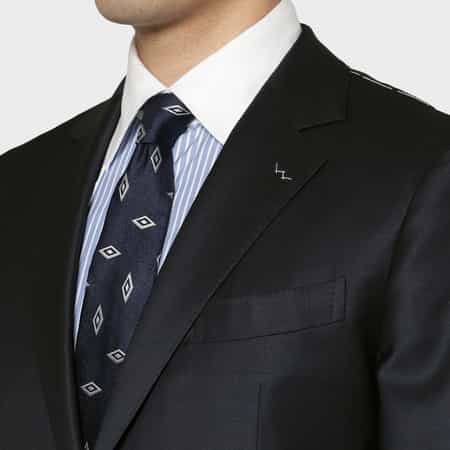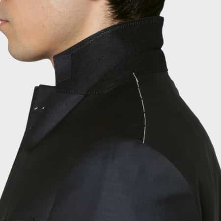 ・肩や胸周りは必要最小限の毛芯で、ごく軽やかに構築したスーツ