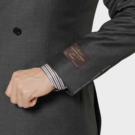 ・肩や胸周りは必要最小限の毛芯で、ごく軽やかに構築したスーツ