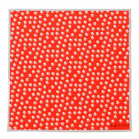有名メゾンのアイテムも手がけるファクトリーで作られるスカーフには、美しさに定評のあるプリント、手縫いで繊細に仕上げられたパイピングなどにその一端を見ることができ、モダンなデザインとイタリアの伝統的な職人技術の融合を十分にご堪能いただける逸品です。