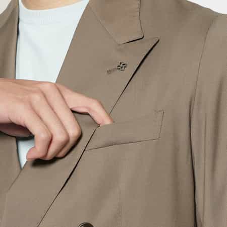 ・上質なウール素材を使用し、ダブルボタンならではの品格と落ち着いた佇まいを演出