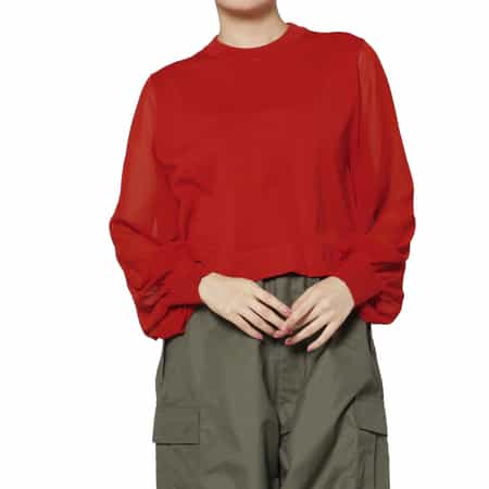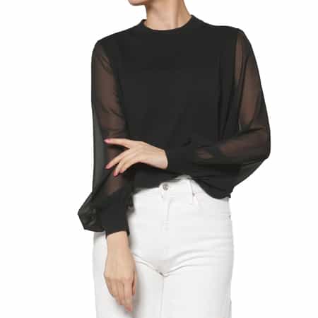 ・ボリューミーに仕上げた袖部分は、ポリエステルシフォンで透け感が魅力