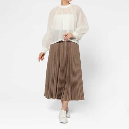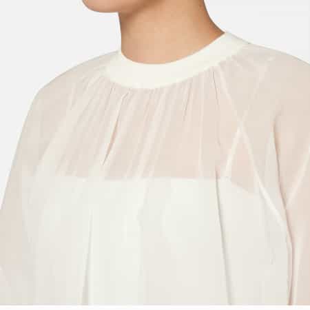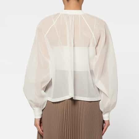 ・繊細な表情を生み出すシャーリングディテールが印象的なシアー素材のブラウス