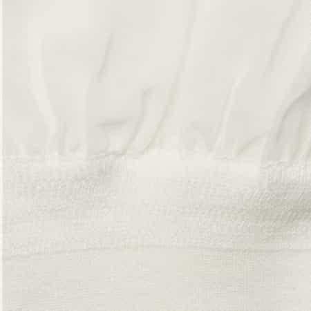 ・細かなシャーリングが身体に自然に沿いながらも締め付け感の少ない女性らしいシルエットを演出