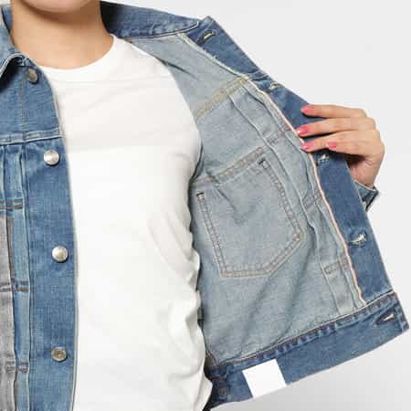 ・旧式力織機で織られた生地を使用し、クラシックなデニムジャケットの風合いを再現