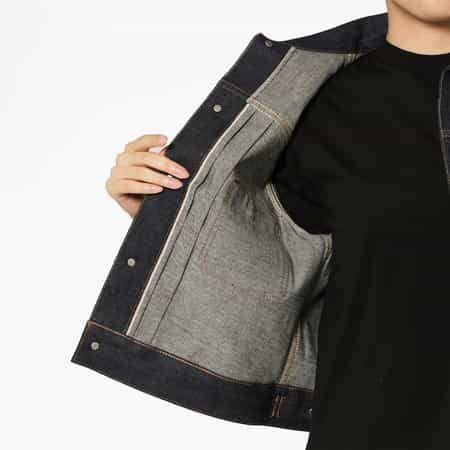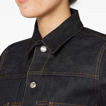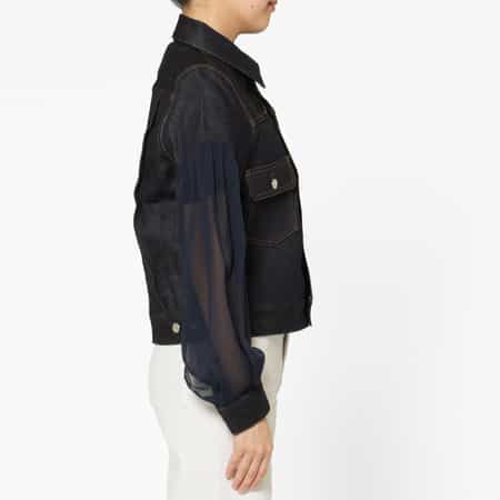 ・袖部分がシアー素材に切り替えられたデニムジャケット