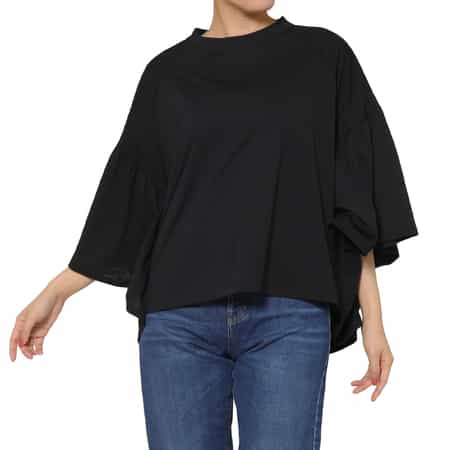 ・ギャザースリーブのショートTシャツ