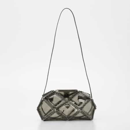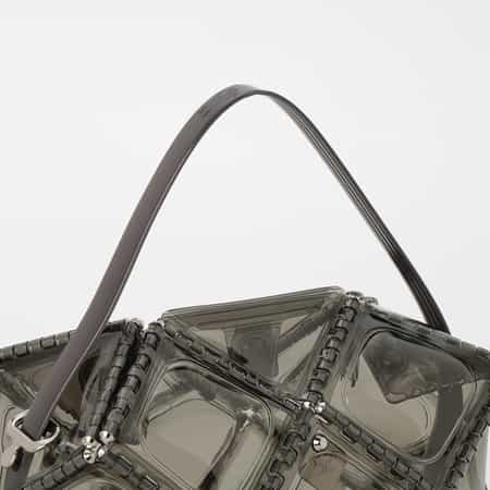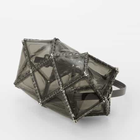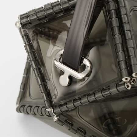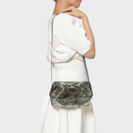 ユニークなフォルムとPVC素材の軽やかな見た目ながらオケージョンにも使用できる上質さを兼ね備えたアイテムが特徴です。
