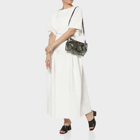 ・包装紙に包まれたソフトキャンディを思わせるハンドバッグ