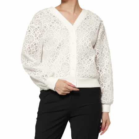 ・立体感あるコード刺繍を使用した前後2WAY着用可のカーディガン