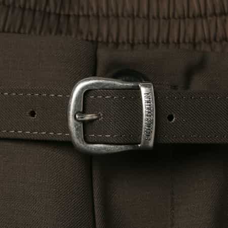 ・ゴム仕様でリラックスした着心地ながら、ウエストマークが作れる同素材のベルトがデザインポイント